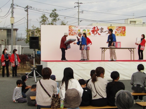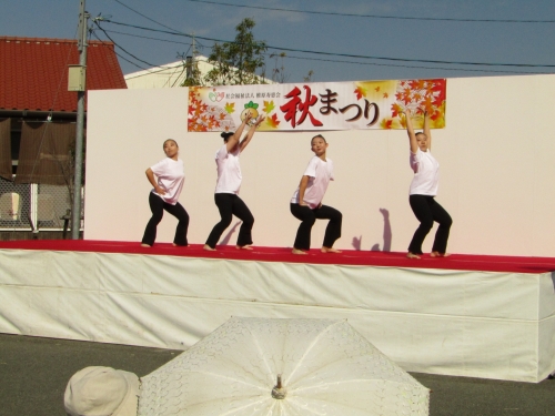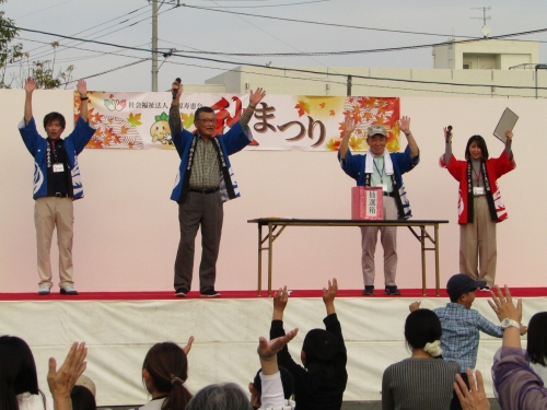 令和7年11月8日(土)さわやかな秋晴れが広がる中、2年振りに社会福祉法人 椎原寿恵会の秋まつりを開催しました。来場者は300名を超え、真心の園駐車場内に設けたステージでは、佐賀みやきひょっとこ会のユニークで楽しい踊り、鳥栖商業高等学校のダンス部による躍動感あるダンスパフォーマンス、鳥栖吹奏楽団の皆さんが懐かしい曲など素晴らしい生演奏をそれぞれ披露して下さいました。入所者様やそのご家族、地域の皆さまも手拍子を打ちながら和やかに楽しまれていました。法人のイベントでは〇×クイズと豪華な景品が目玉の大抽選会を行い、会場は閉会まで大賑わいでした。参加者のみなさんからは「楽しかったです。」「来年も楽しみにしています。」との声が多数聞かれました。また今回の開催では、協賛各社様や緑生館の学生ボランティアの皆さんにもご協力をいただきました。関係者の皆さま本当にありがとうございました。椎原寿恵会はこれからも地域に根差した役割を担い、皆さまの「まごころ」に寄り添い続け歩んでまいります。