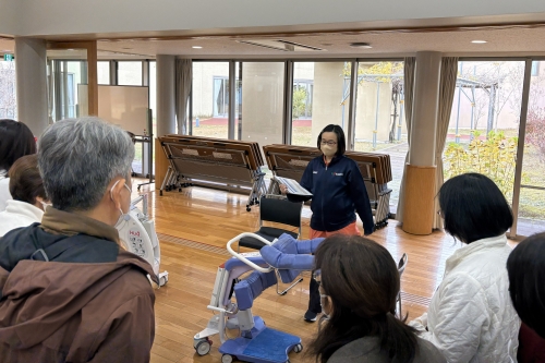 見学内容は、施設の概要説明や施設内フロア等をご案内しながら、日常のケアの様子や設備についての説明をさせて頂きました。熱心な質問などもあり、皆さま充実した時間を過ごされた様子でした。